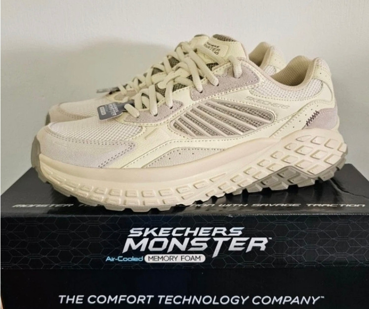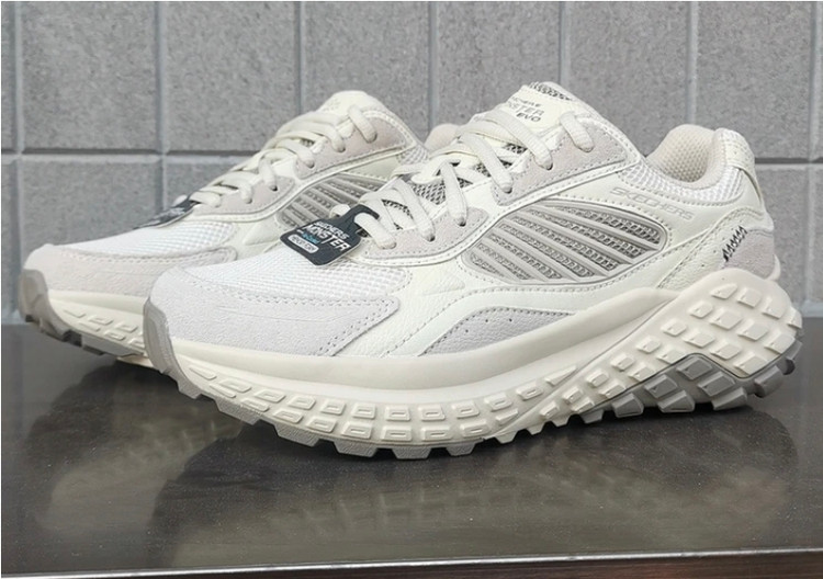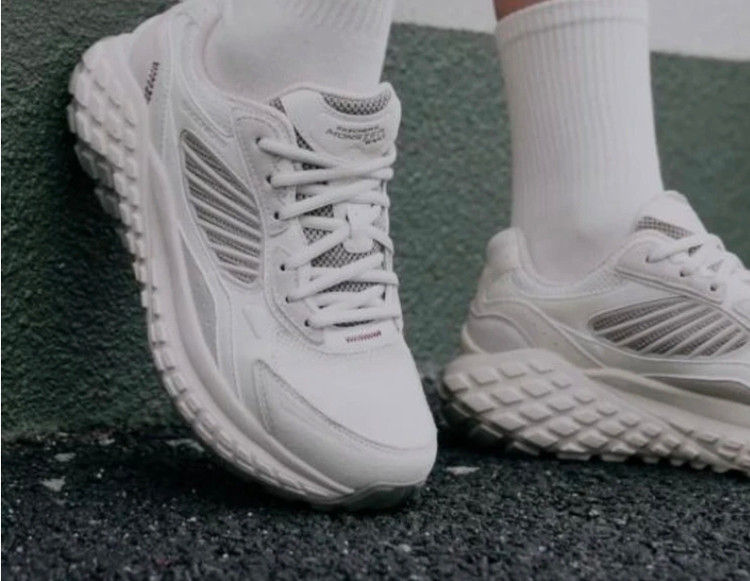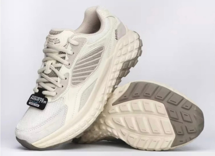 این کتانی کشویی دارای رویه مشبک مهندسی شده ورزشی با جلوی بانجی است.