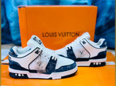 کتونی لویس ویتون . ساخت ویتنام ، سایز۳۶ تا ۴۵ ست جذاب ، فروش بصورت عمده و تک ، پایین ترین قیمت. استایل شیک و جذاب .Louis Vuitton LV Trainer Velcro Strap Monogram Denim Vietnam