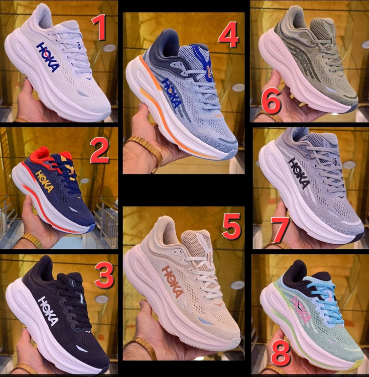 کتونی هوکا باندی ۹/shoes hoka bondi 9/ساخت ویتنام وارداتی /همراه با جعبه باربارکد دار/سایز ۳۶ تا ۴۵ /فروش عمده و تک/ست جذاب.