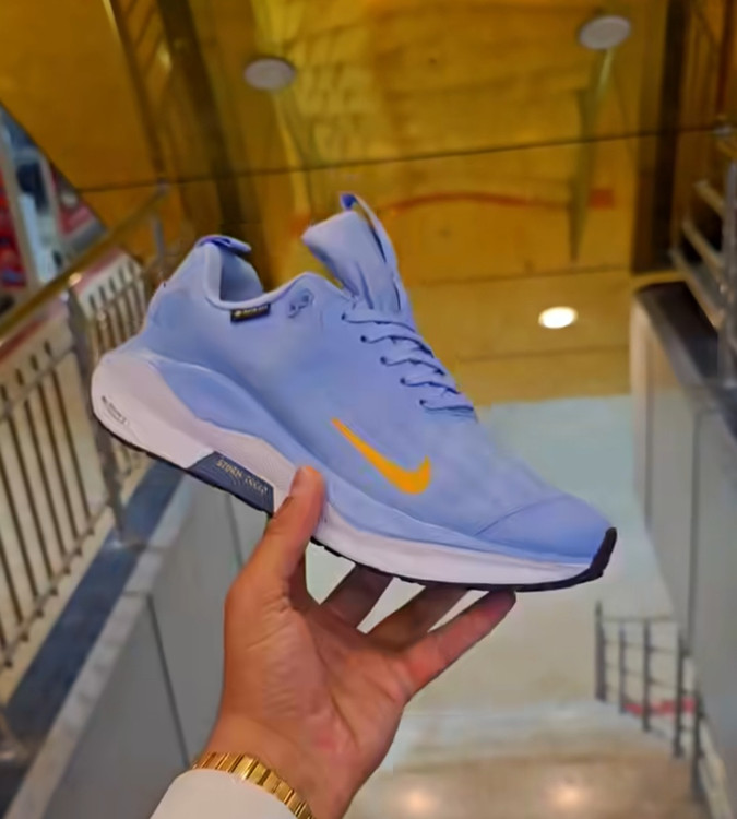 ترکیب رنگهای آبی، نارنجی و سفید همراه با لوگوی نایکی و چاپ GORE-TEX باعث شده که این کفش نهتنها کاربردی، بلکه بسیار شیک و مناسب برای استفاده روزمره نیز باشد.