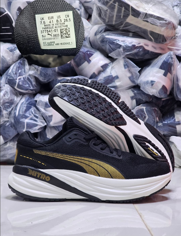 کتونی پوما Magnify Nitro مشکی طلایی مسترکوالیتی ویتنام مناسب دویدن و استفاده روزمره