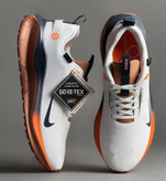 ترکیب رنگهای آبی، نارنجی و سفید همراه با لوگوی نایکی و چاپ GORE-TEX باعث شده که این کفش نهتنها کاربردی، بلکه بسیار شیک و مناسب برای استفاده روزمره نیز باشد.