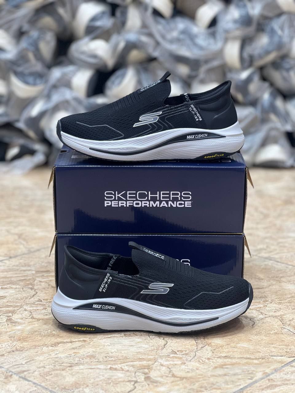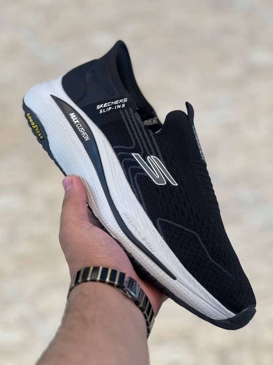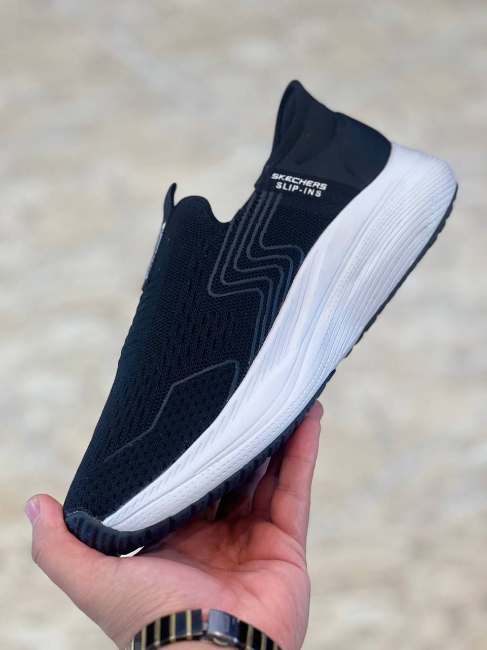 این کفش اسکیچرز اسلیپ-اینز (Skechers Slip-ins) است، مدلی از کفشهای کتانی بدون بند مردانه که برای راحتی و پوشیدن سریع طراحی شدهاند.
