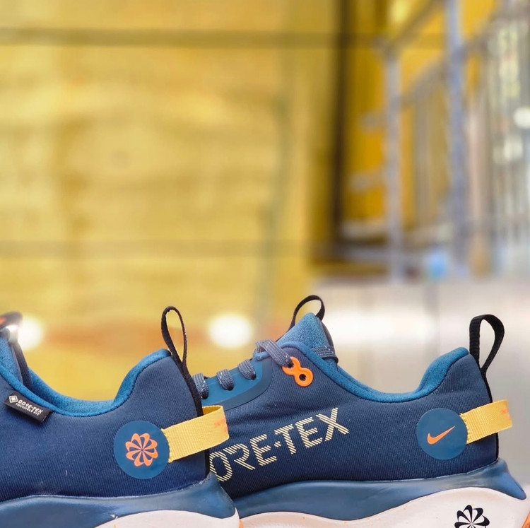 ترکیب رنگهای آبی، نارنجی و سفید همراه با لوگوی نایکی و چاپ GORE-TEX باعث شده که این کفش نهتنها کاربردی، بلکه بسیار شیک و مناسب برای استفاده روزمره نیز باشد.