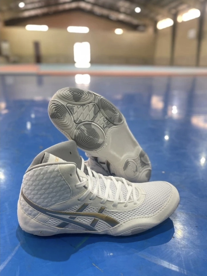 اگر به دنبال یک کفش کشتی حرفهای با طراحی مدرن و کیفیت بالا هستید، کتونی کشتی آسیکس مدل Matblazer یکی از بهترین انتخابها برای شماست. این کفش با رنگ سفید خالص و نوارهای طلایی، ظاهری شیک و متفاوت دارد که هم برای مسابقات رسمی و هم برای تمرینات حرفهای مناسب است.